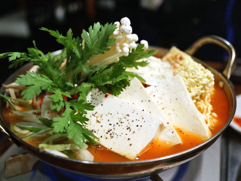 東京のプデチゲは甘いお子様味が多くて、けれどココのは酸味と辛みがスッキリしていてお酒がすすむ大人味。