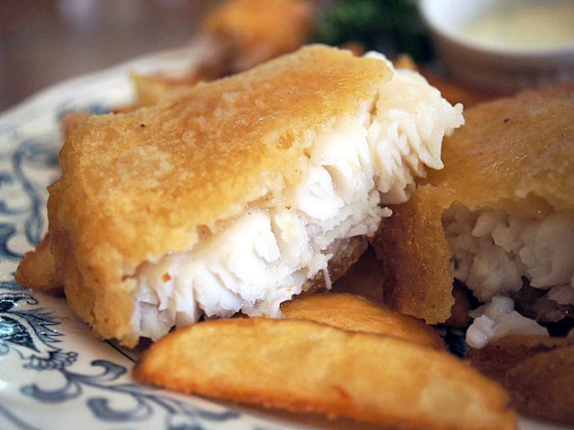フィッシュ・アンド・チップスであるためには、半身がそのまま堂々と揚がっていないとやっぱり気持ちが盛り上がらない。