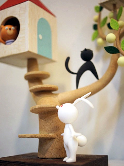 クレイフィギュアがメインなんだけど、日常生活のワンシーンをファンシーに表現したような作品が結構多い。