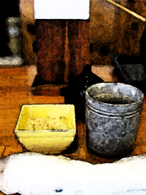 分厚いタオルのおしぼりに、大根おろしが小鉢に少々。