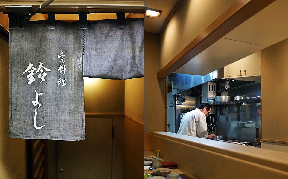 最初の扉で気持ちを赤坂の街とおさらばし気持ちを落ち着け、それから次の扉を開くという趣向にて、2つ目の扉をあけつつ厨房にたつご主人と目があいニッコリ、会釈する。