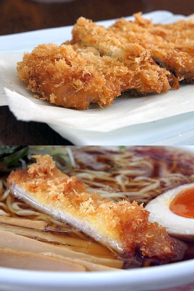 経木にのってやってきた、ラーメン用のとんかつは薄くてパリパリ。