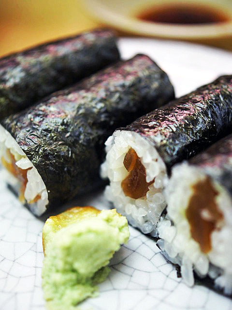 干瓢巻きにタップリわさびを仕込んだモノで、甘く煮込んだかんぴょうの焦げた香りと甘さが消えるとビリッとわさびの体があとからやってくる。