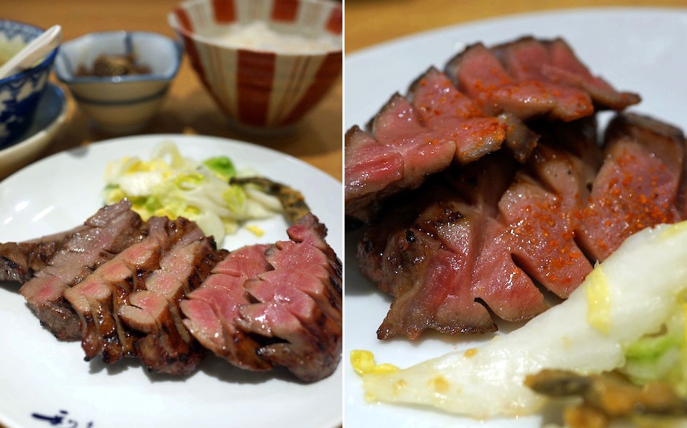 牛タンの中でも一番分厚く旨味も強い根っこの部分を分厚く切って、レアに焼く。