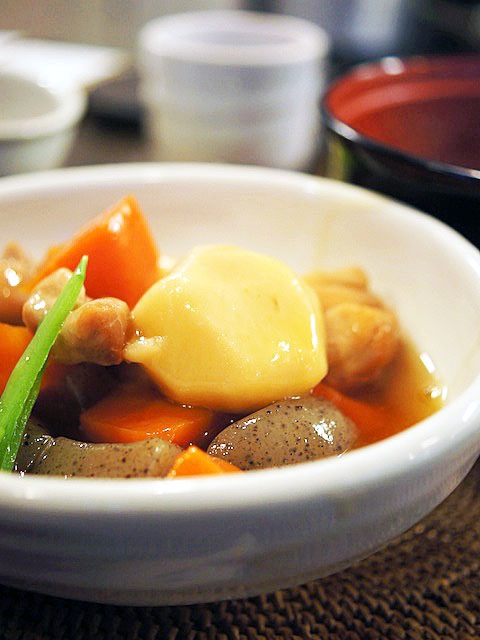 今日は鶏と里芋で、ちょっと甘めの醤油スープの中でコトコト煮こまれて、やわらかになったところでとろみをつける。