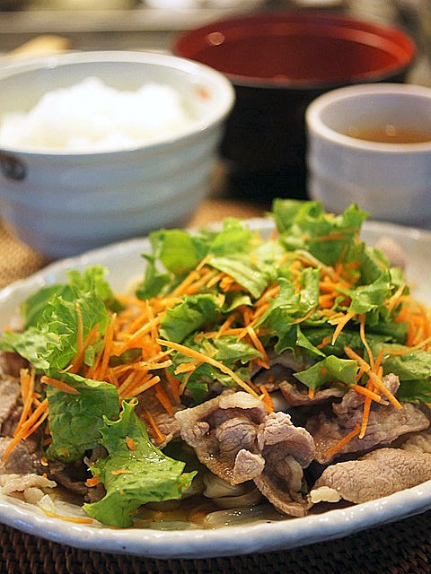 普通、ココの日替わり料理は野菜と肉の煮っころがしがメインなんだけど、今日は冷しゃぶ。