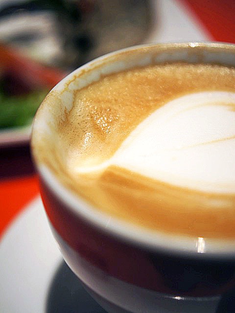 トントンタンタン、沸騰させたミルクを入れたステンレスのピッチャーをカウンターの上に叩きつけつつ泡を出し、サーッとカップの半分くらいのとこまでやさしく注ぐ。