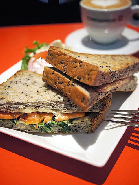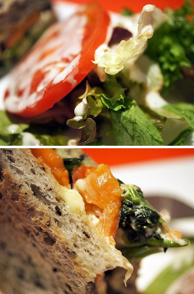 ほうれん草とスモークサーモンのサンドイッチは、見事な一品。