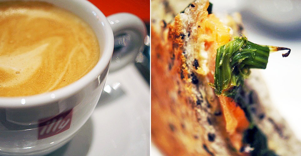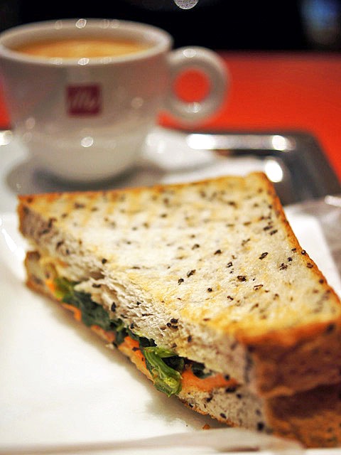 代わりにサンドイッチをいかがですか?って勧められて、結局、スモークサーモンとほうれん草のトーストサンドを選んで食べる。