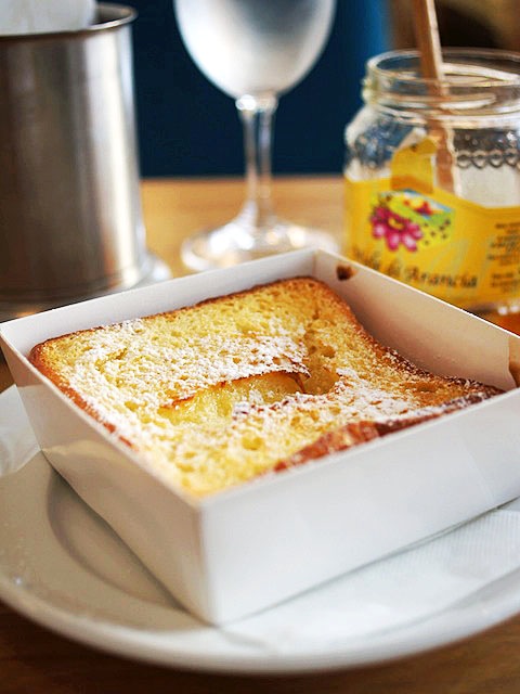 玉子の液をタップリ含んだパン生地が、トロンとまるでプリンのような食感をする。