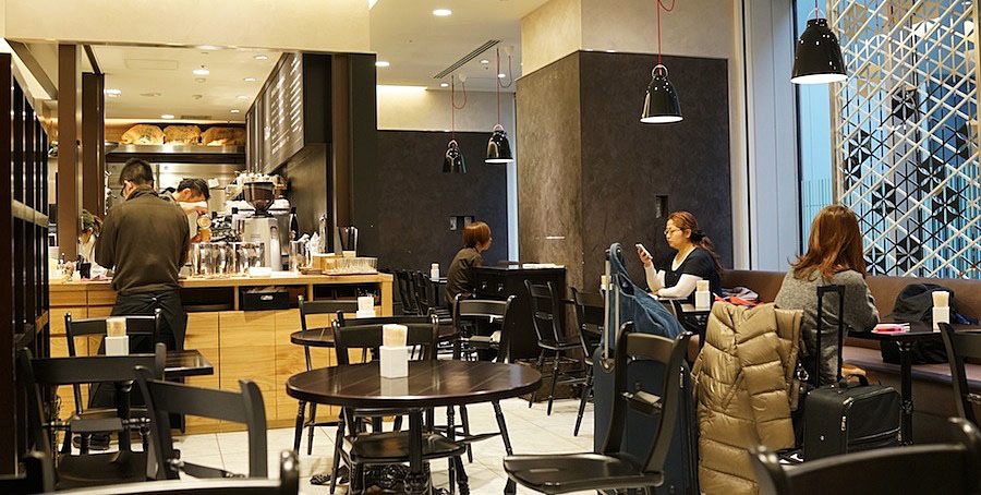 ヒカリエの中…、10時スタートの開店早々、朝食をかねてササッとコーヒー飲みましょうか、とやってきたらばココはセルフサービスじゃないのですネ。
