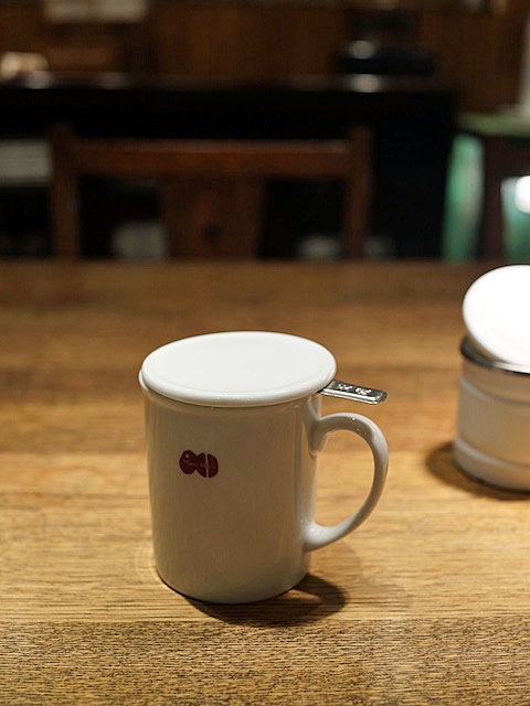 「マグ茶」と言うここのサービスで、蓋の下にはストレーナー。