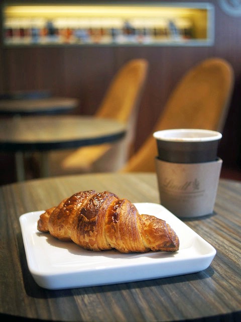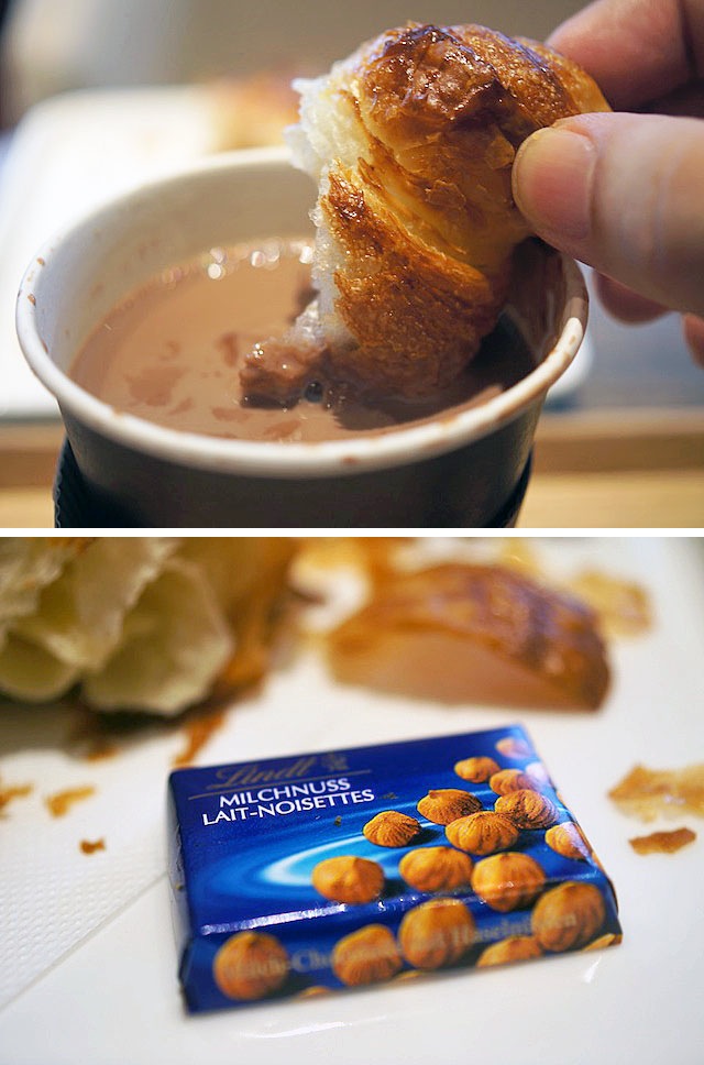 トプンとかじったクロワッサンをチョコに浸して、プルンと味わう。