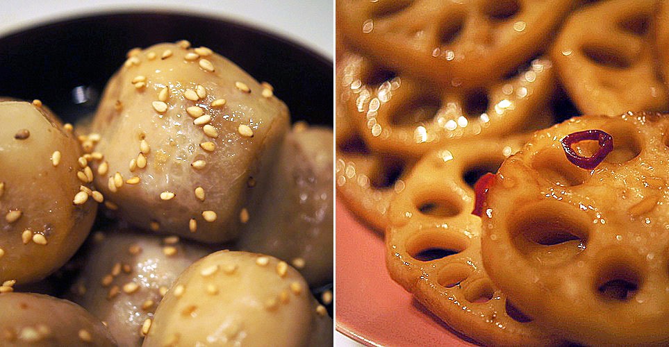 出汁と醤油でユックリ煮込んだ里芋はネットリとろりと口の中で粘って気持ちを豊かにさせて、きんぴらレンコンはカリカリ歯ごたえたのしくて、夜のお腹が整っていく。