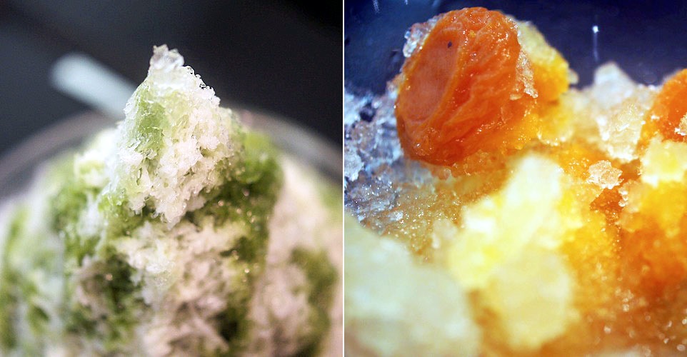 氷の表面が透き通って見えるのはシロップたっぷり吸い込んで、かいた氷が透き通ってしまっているから。