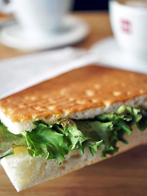 ラッテを甘くしてもらいそれからサンドイッチをもらう。
