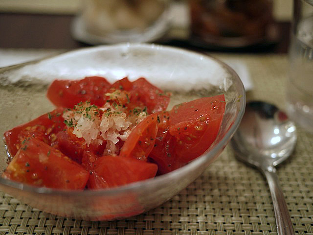 口の中でまるで冷たいトマトスープになってくような、そんなサラダ。