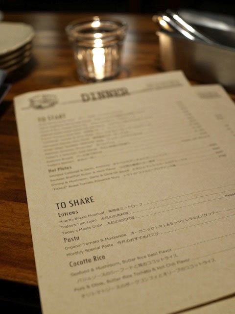 まだまだ認知がなされていないからでしょうか…、あるいは野菜とパンというメニューコンセプトが夜にお客様を集めるためにいささか迫力不足なのか、お店の中は始終静かで話をするにはよき状態。