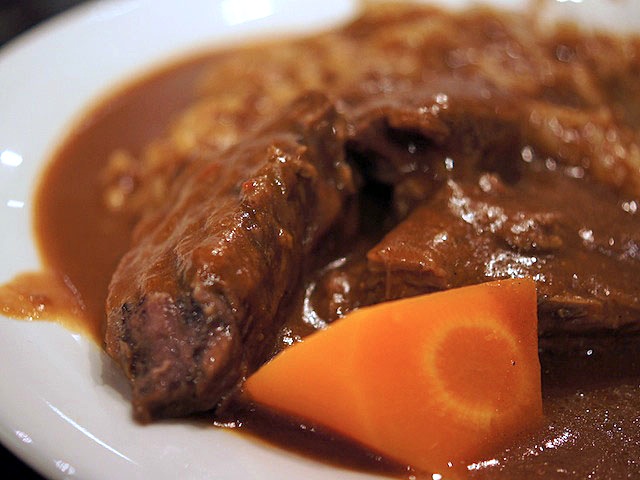 それをのっけて、カレーをかける…、つまりビーフシチューのシチューの部分をカレーに変えたような感覚。