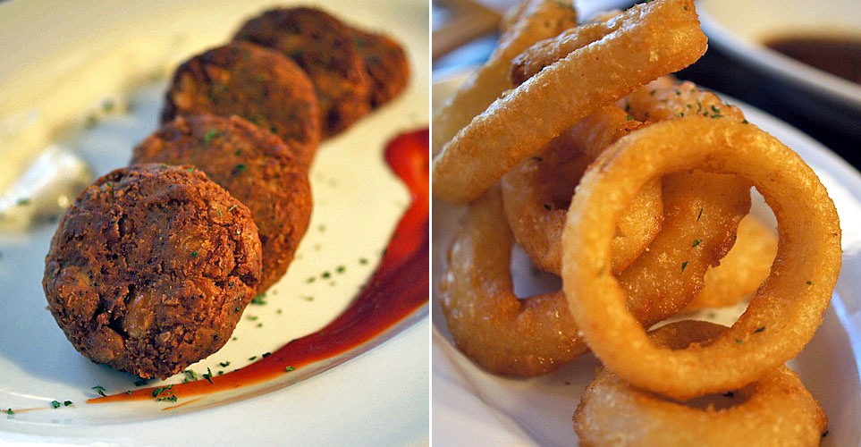 オニオンリングは立派で肉厚な玉ねぎに、ポッテリとした膨らむ衣をタップリまとわせ、ガリッと揚がって、噛むとヌメッと中から甘い玉ねぎがくる。