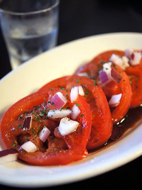 ブラッディーマリートマトっていう名前の料理で、楕円のお皿にスライストマト。