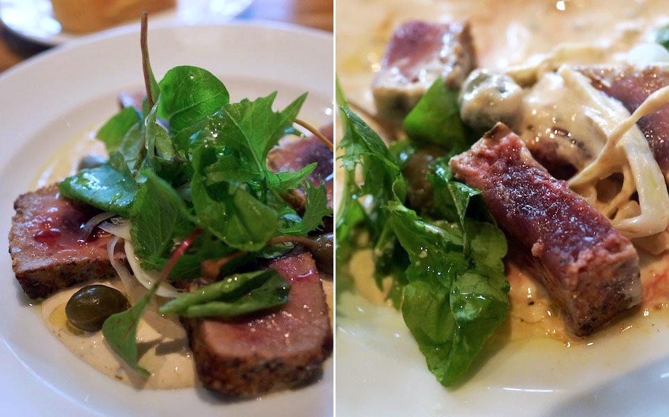 ツナは塩のうま味でほどよく味が整い、そのまま食べるとヒヤッと中がレアの状態。