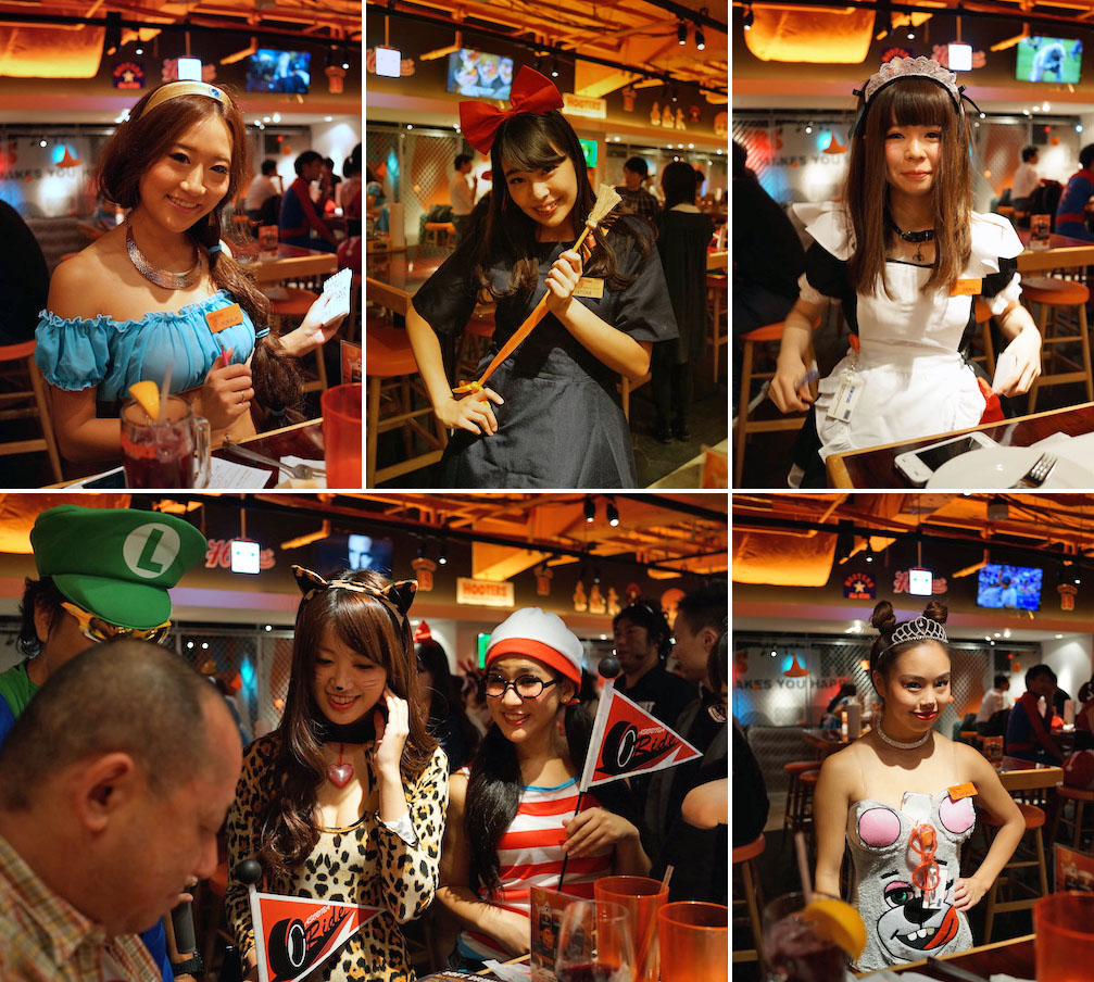 いつもはチアーリーダーの格好をしたフーターズガールも今日は、ハロウィーンにてコスプレモード。