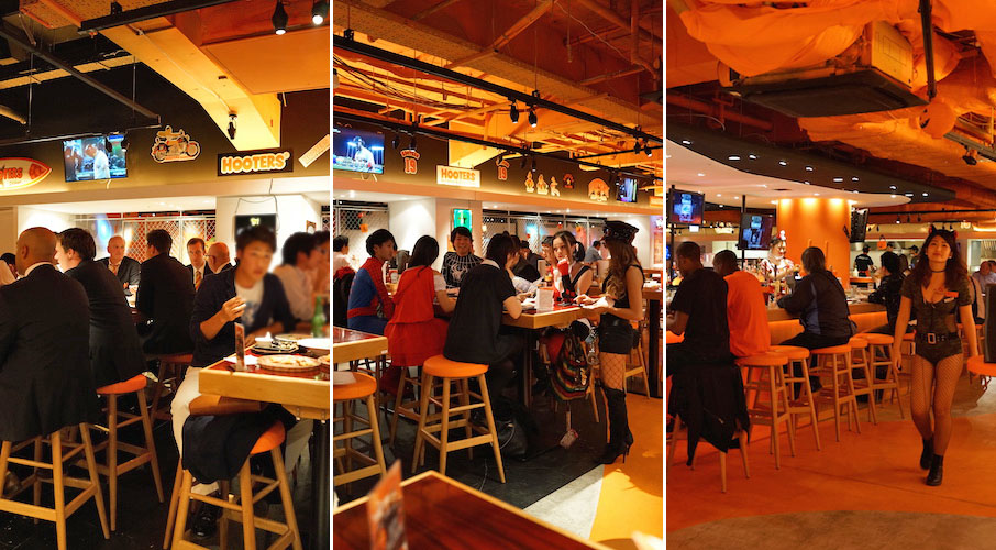 フーターズガールの数も多くてお客様のエネルギーで満たされお店はハイテンション。仮装姿のグループ客や、アドレナリンが全開の野郎グループでもう大騒ぎ。