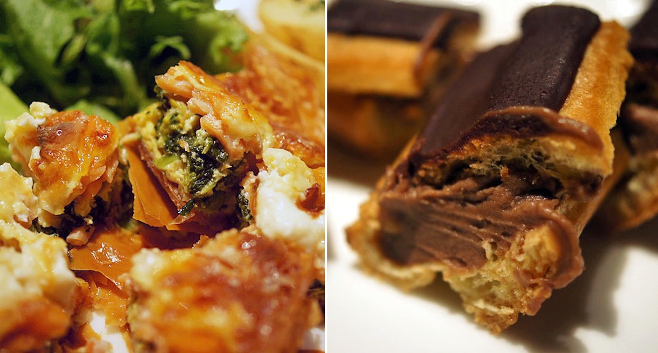 どちらも生地がしっかりしてて、ナイフフォークでスパッと切れる…、にも関わらず口の中では驚くほどにホロッと壊れ、たちまちトロンとなめらかになる。