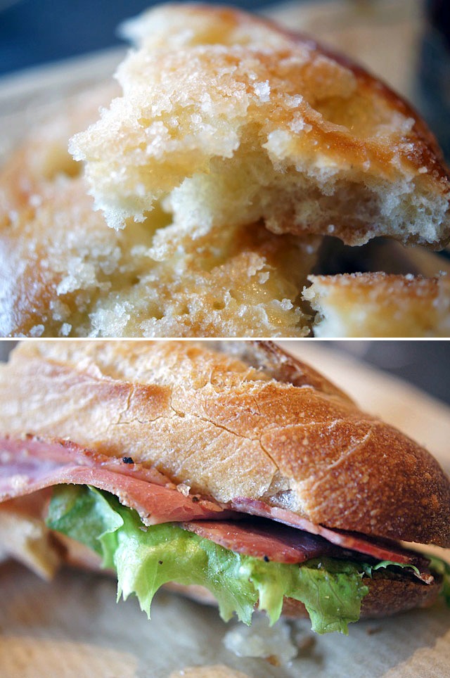 細焼きの堅いバゲットで生ハム挟んだ、シンプルだけど味わい深いサンドイッチ。