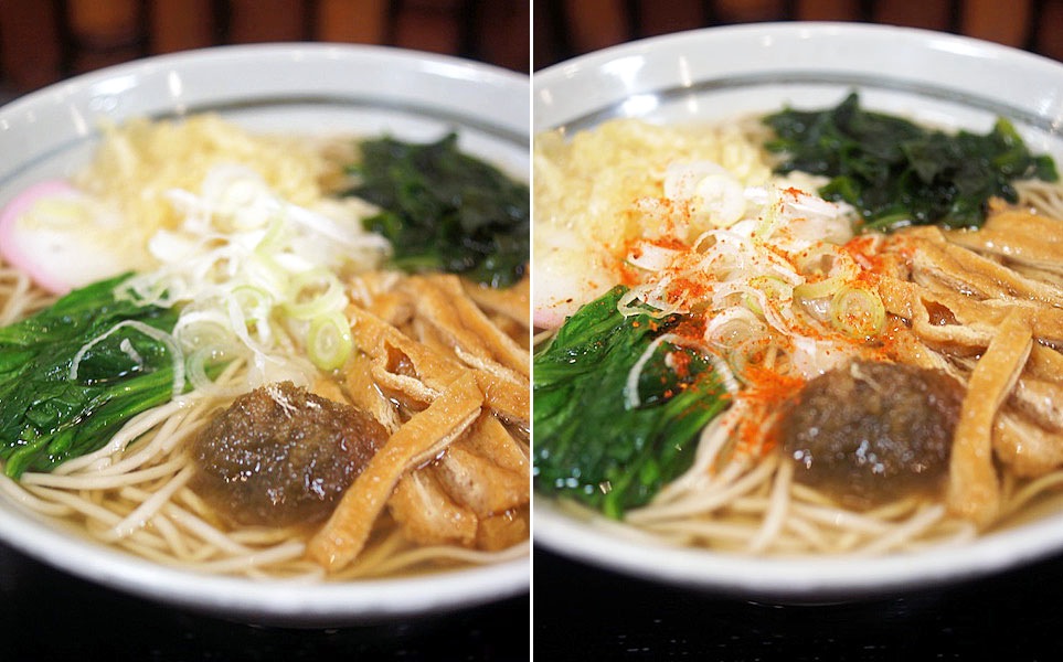 醤油の風味は控えめで昆布と鰹の出汁のうま味を、そばがたぐって口の中を満たしてくれる…、これには絶対、一味が旨い。
