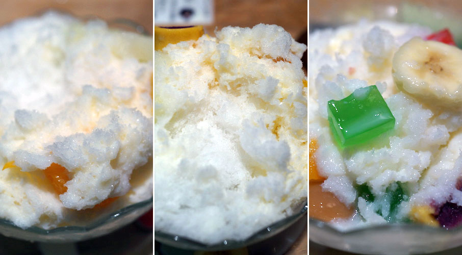 細かでサラサラした氷。そこにタップリ練乳かけてかなり甘めのかき氷。