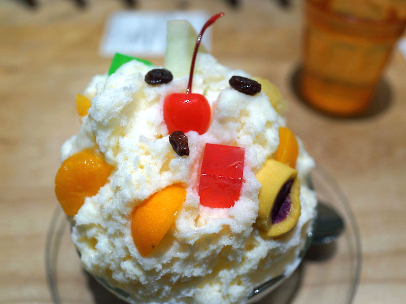 こんもりとした白い氷にフルーツ、ナッツやレーズン、ゼリー。その散らかる様がまるで白熊の顔みたいだからとこの名前がついたんだという。たしかにそんな顔にも見える。