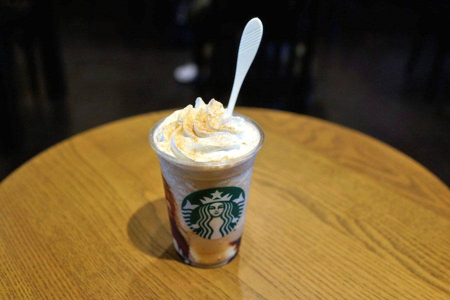 秋のキャンペーン商品、プリンの入ったフラペチーノ。