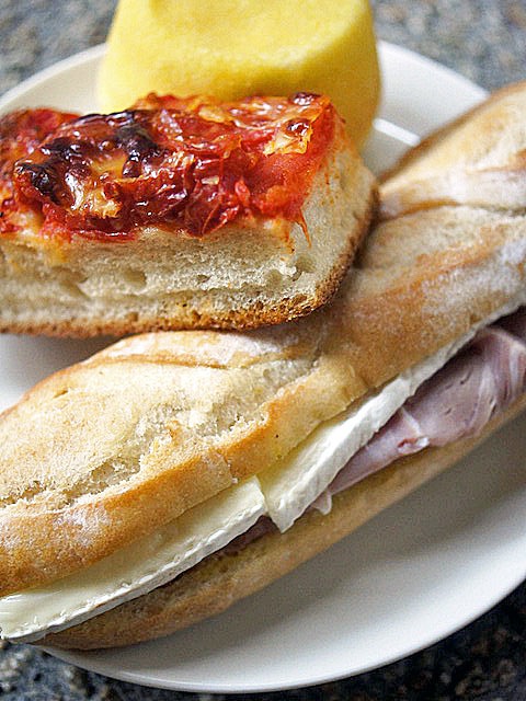 フッカリとしたバゲットを使ったハムとチーズのサンドイッチ。