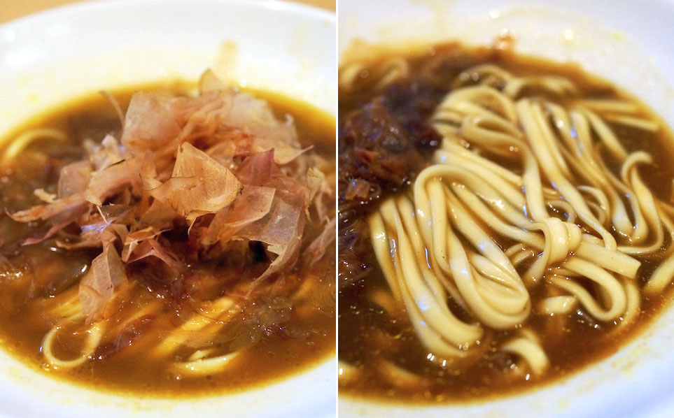 「うね乃」という京都三条にお店のある、出汁がおいしいを心がけてるうどん屋さんのレシピで作っているようで、スパイシーにして出汁のしっかりしていることにゴクゴク、飲み干す美味しさでした。オキニイリ。