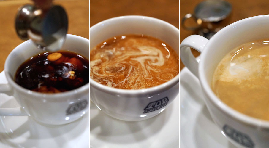 しばらくそのまま味わって、そこにミルクを注いで飲みます。