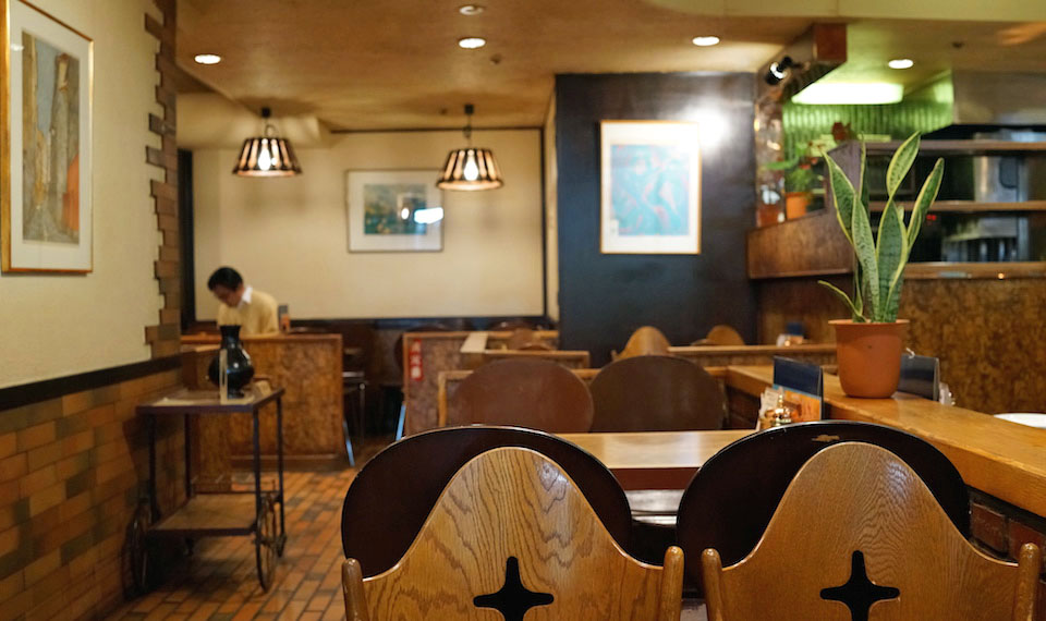 木造の椅子やテーブルという組み合わせが、ちょっと山小屋みたいな感じ。ひんやりとした空気を裏切る、おいしく甘いコーヒーの香りがステキ。