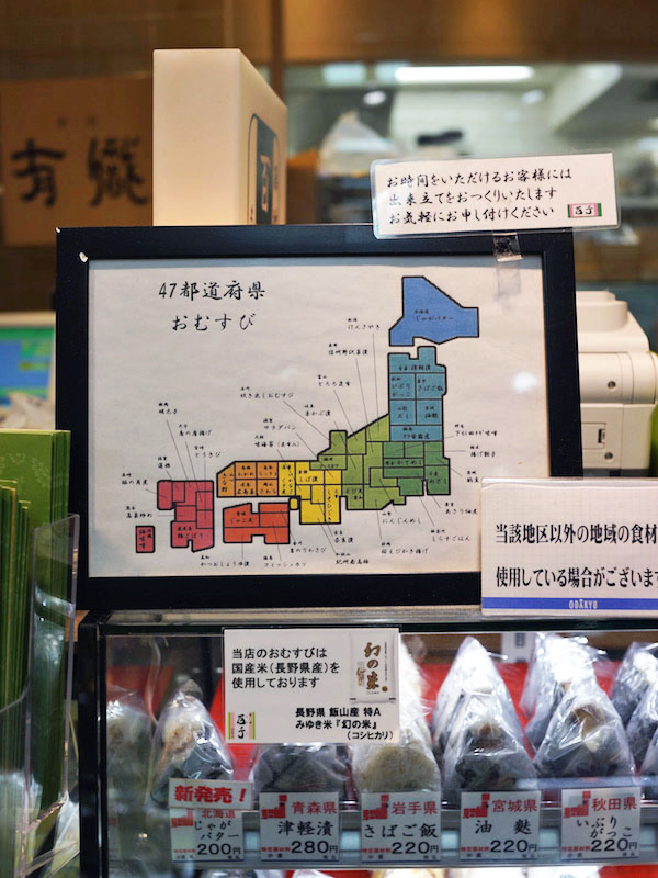 それぞれの当道府県をイメージさせる食材を使ったおむすびというコト。ショーケースの中を見ると、これが結構面白くって、それでいくつか買ってみた。