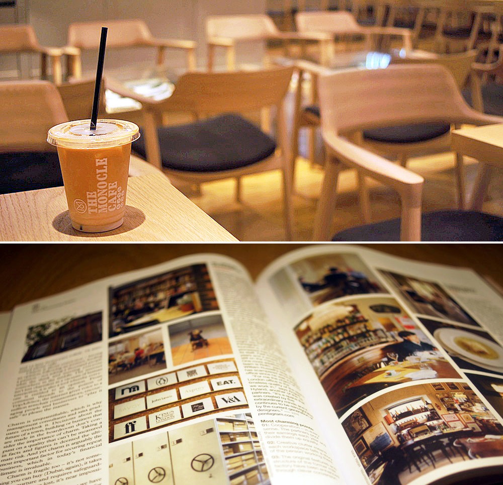 モノクルカフェって名前の店で、実はこれ、ロンドンに本社をおいた旅をテーマにしたライフスタイル雑誌「MONOCLE」のプロデュースしたカフェで結構、かっこいい。