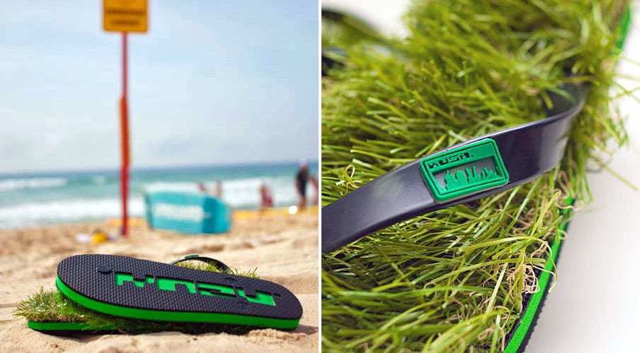 素足で芝生の上を歩く、そんなステキをどんなとこでも味わえる「KUSA」って名前のサンダルで、オーストラリアで売られてる。