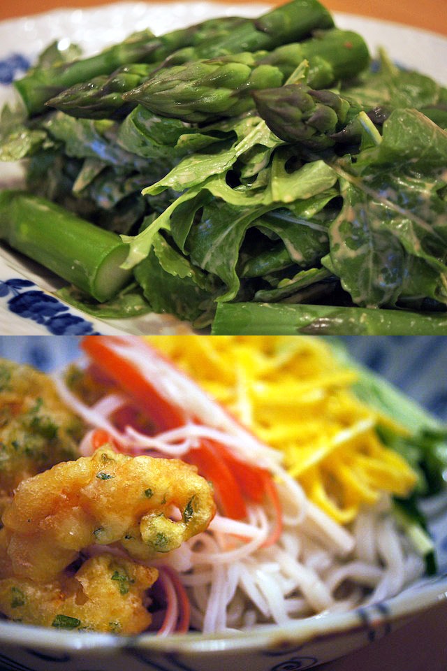 茹でて冷まして、そこに具材を彩りあわせてあれこれ飾る。