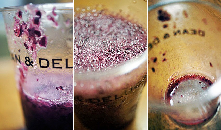 皮も種も一緒に丸ごと、氷と一緒にジャジャッとブレンダーミキサーに入れジュースにしたモノ。