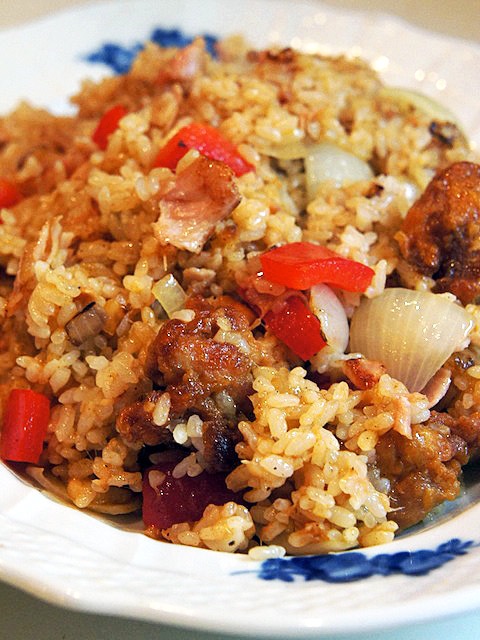 先日から気になっていたジャンバラヤ風チャーハンを昨晩作りました。家族に大好評でした。我が家の定番チャーハンは、実はシーチキンチャーハンで、そこに唐揚げ?!と思いましたが、大変おいしく頂きました。実は(こればっかり)ジャンバラヤはなんとなくギトギト感があって、食べず嫌いでしたが、お家ジャンバラヤはお気に入りなりそうです。