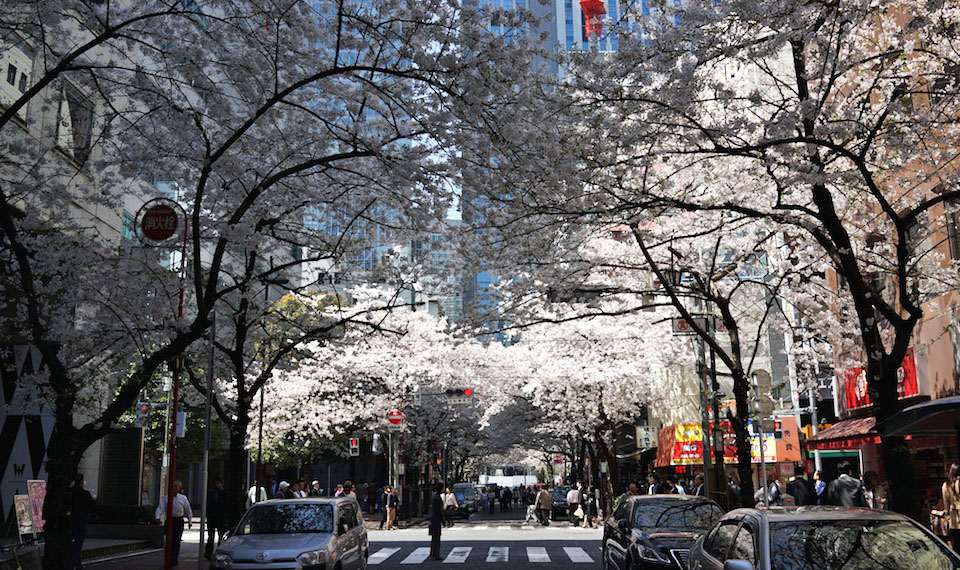 それにしても、東京駅から日本橋の高島屋へとつながる路地。桜がまさにイマヤサカリの見事な景色。
