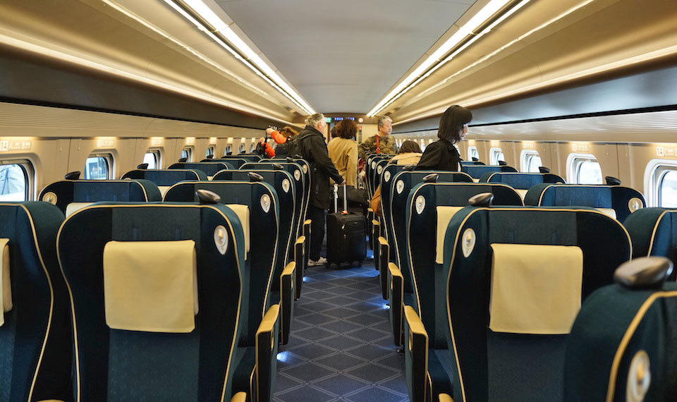さすが最新鋭の車両です。インテリアも瀟洒で使い勝手がよくて、旅をたのしくしてくれる。
