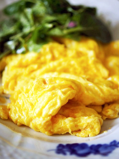 バターを抱いて焼き上がり、ツヤツヤとして玉子をほぐすときにくわえた塩と胡椒の味わいだけで、甘くてしかもコッテリ旨い。