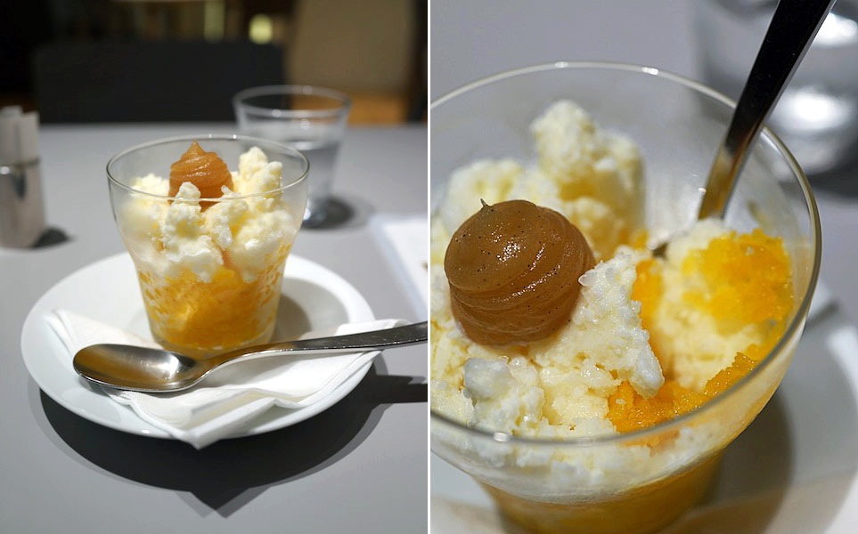 底にはラム酒の香りをつけたあんこがトロンと沈み、やさしい甘みにウットリします。実はボクって確かあんこが嫌いなはずだったよなぁ…、と思い出しつつ、決してこれが嫌じゃない。