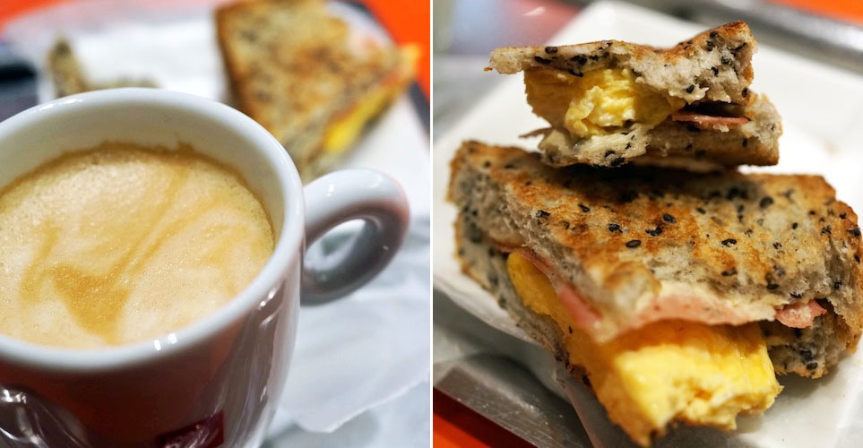 パニーニを焼くためのトースターで焼いてくれるので、コンガリ焦げ目がキッチリついてる。