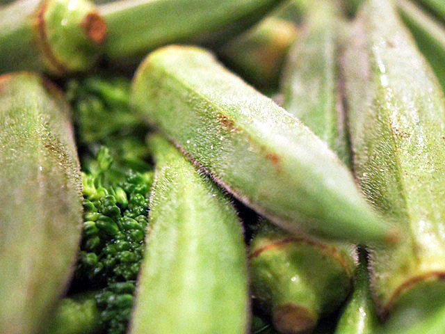 一緒に野菜…、オクラと菜花、ブロッコリ。